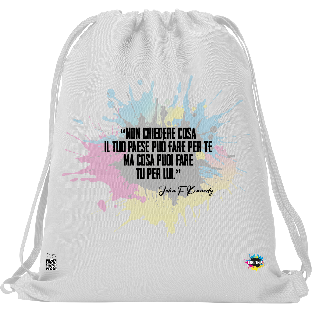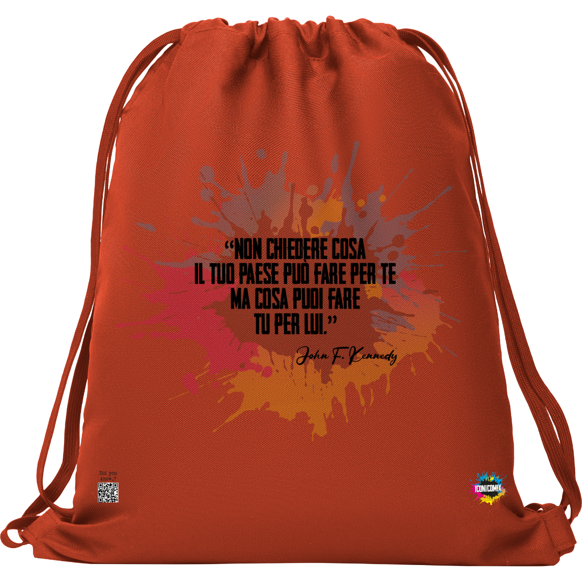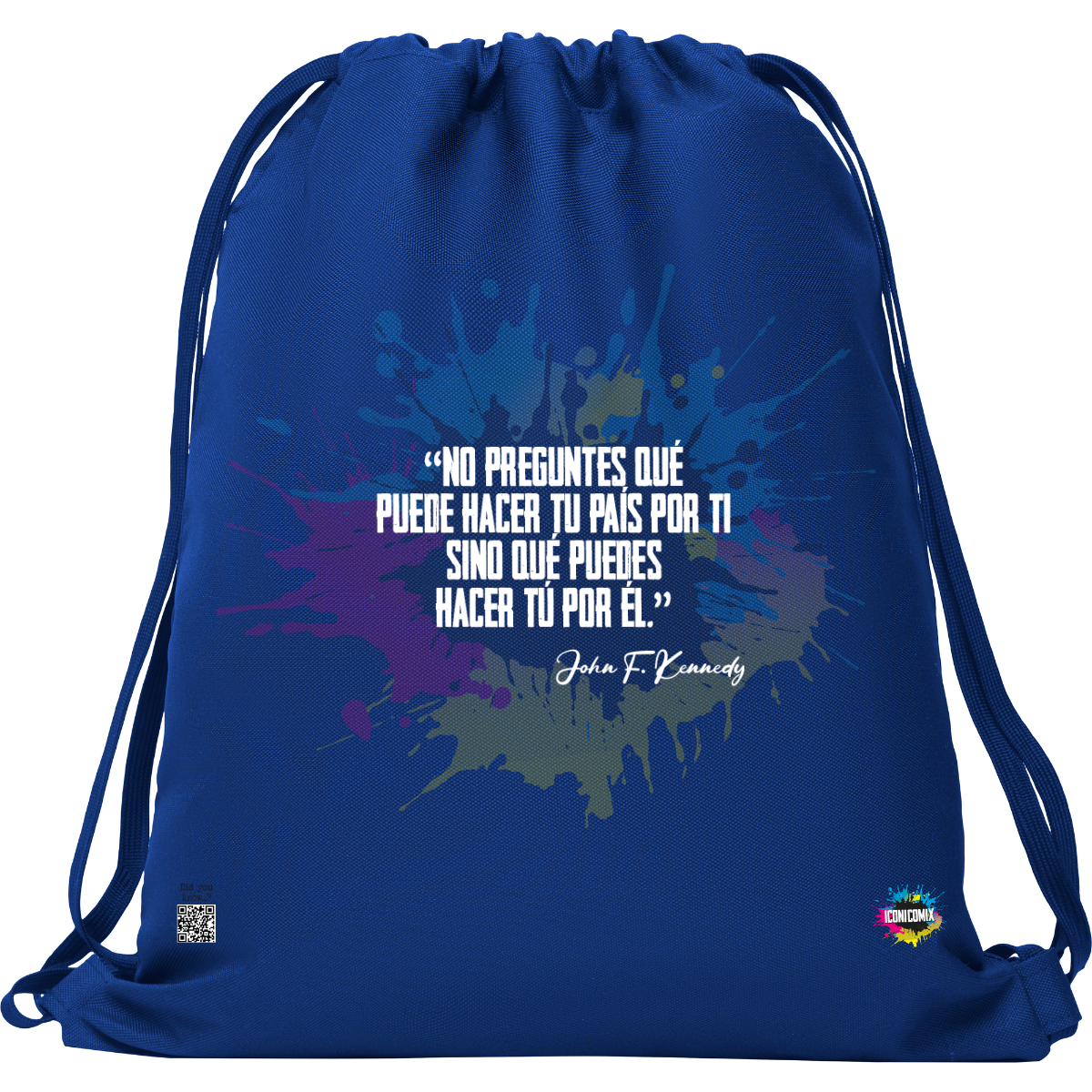 Multipurpose cotton backpack. Adjustable matching drawstrings on the back, 8 mm thick. 100% cotton, 140 g/m².  Measures 37cm / 41cm