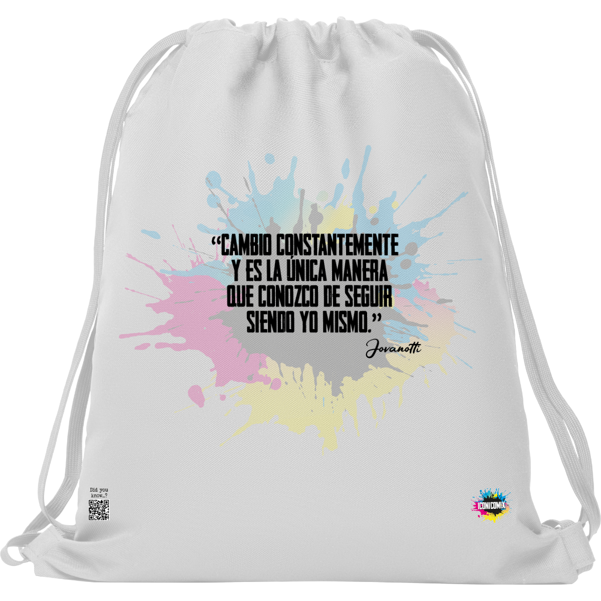 In ogni nostra grafica è presente anche un QR code che reindirizza al sito iconicomix.com, alla pagina ufficiale dell’icona che hai scelto. Una porta digitale che racconta la sua storia, le sue frasi e il suo mondo.