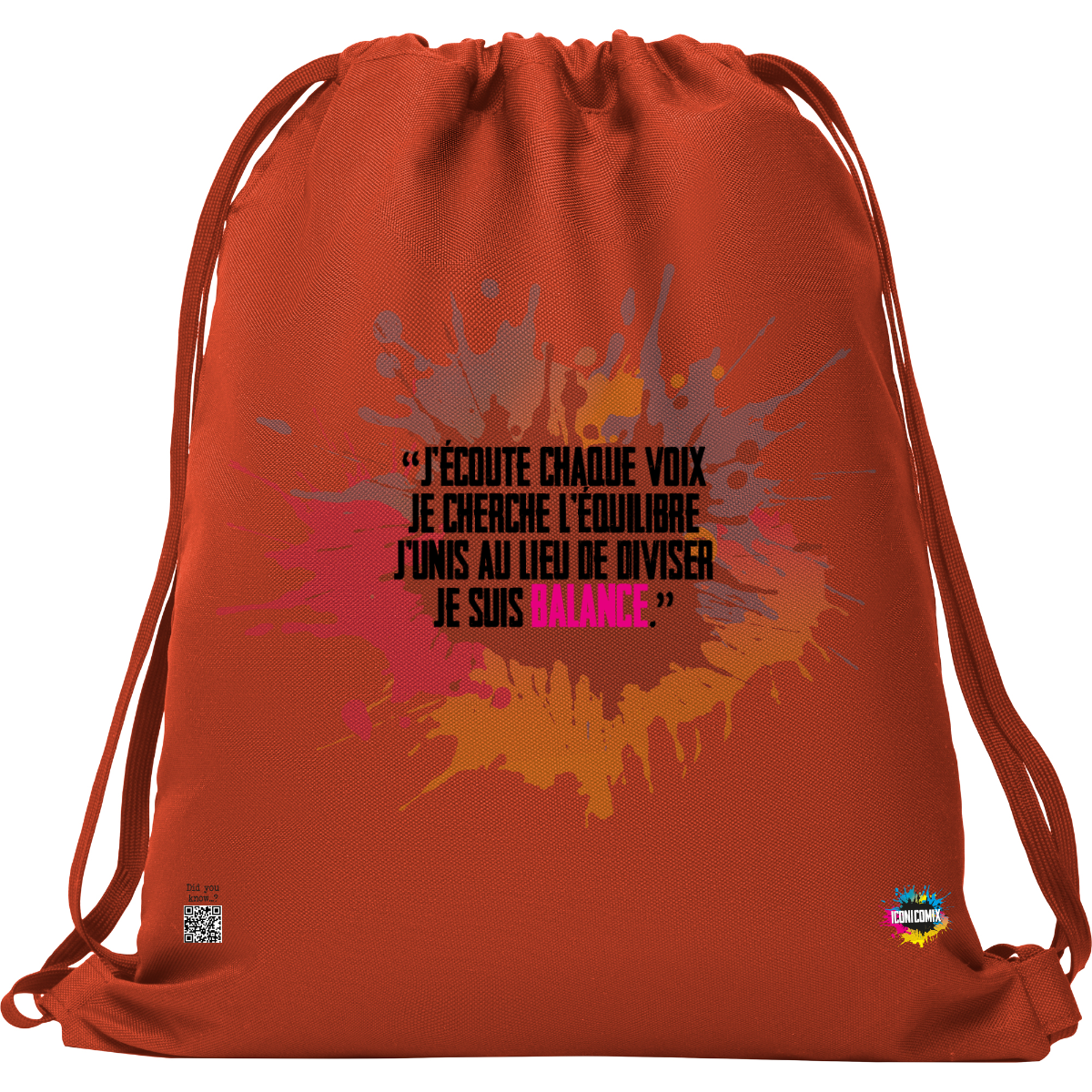 Borsa sportiva con coulisse dal design semplice. Cordini piatti abbinati. Tasca interna con cerniera. 100% poliestere 600D. 150 g/m².  Misure  35,5 X 42,5 cm
