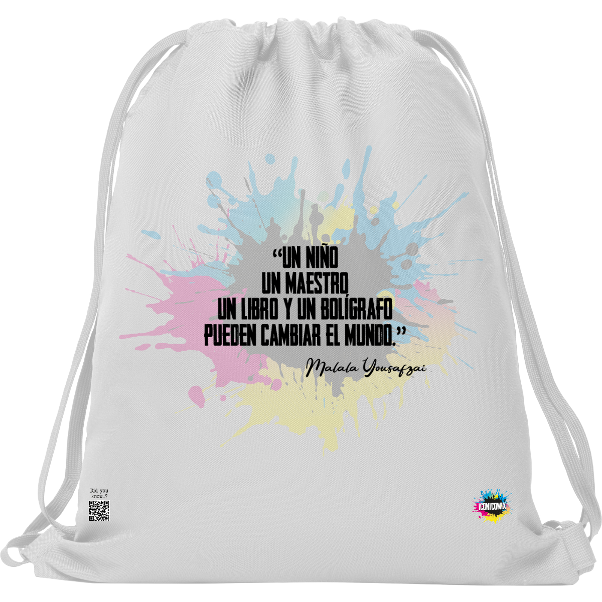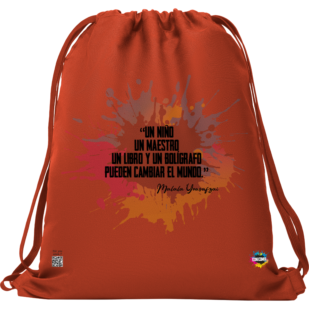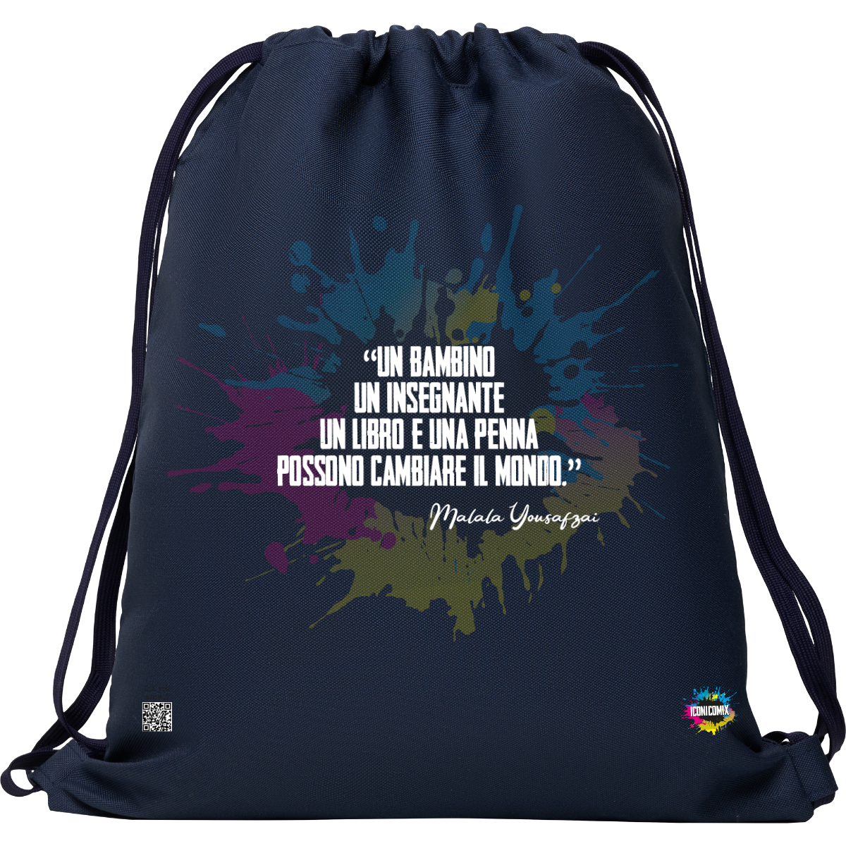 In ogni nostra grafica è presente anche un QR code che reindirizza al sito iconicomix.com, alla pagina ufficiale dell’icona che hai scelto. Una porta digitale che racconta la sua storia, le sue frasi e il suo mondo.
