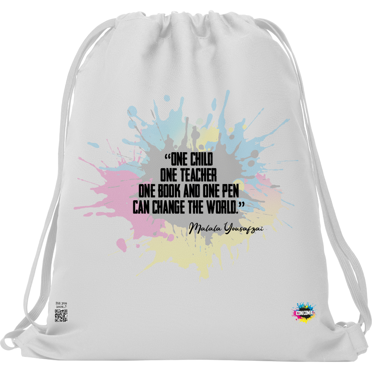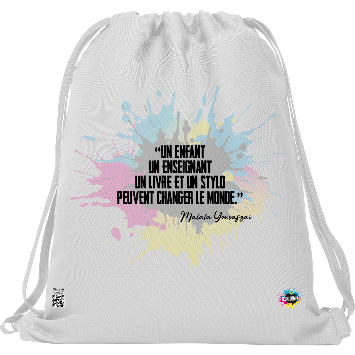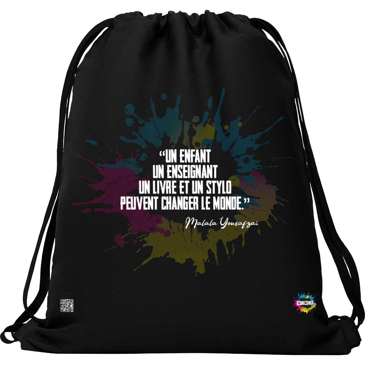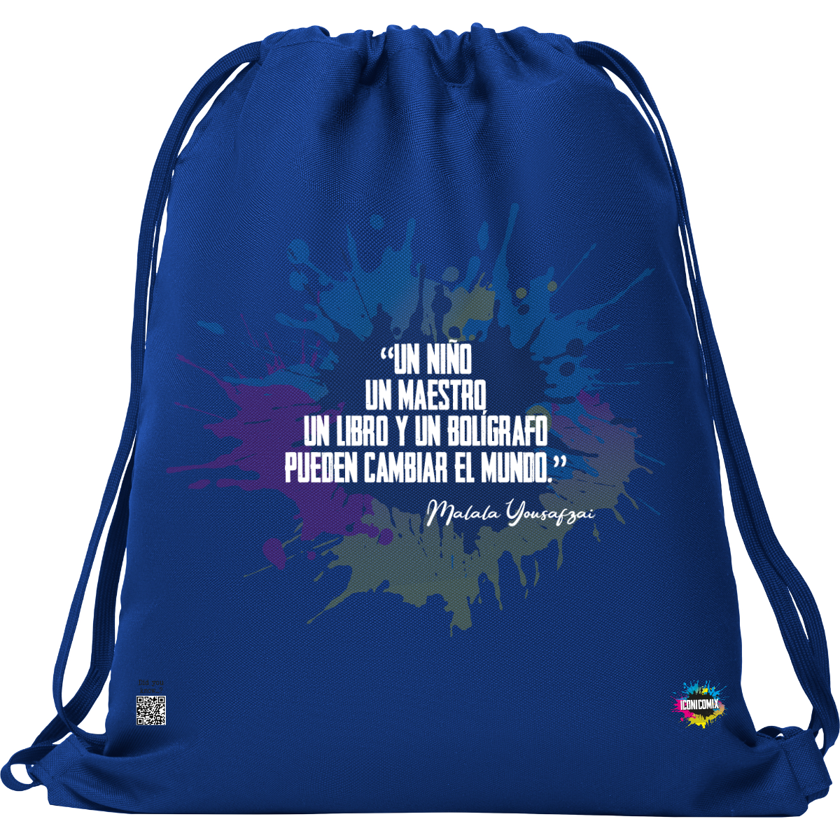 In ogni nostra grafica è presente anche un QR code che reindirizza al sito iconicomix.com, alla pagina ufficiale dell’icona che hai scelto. Una porta digitale che racconta la sua storia, le sue frasi e il suo mondo.