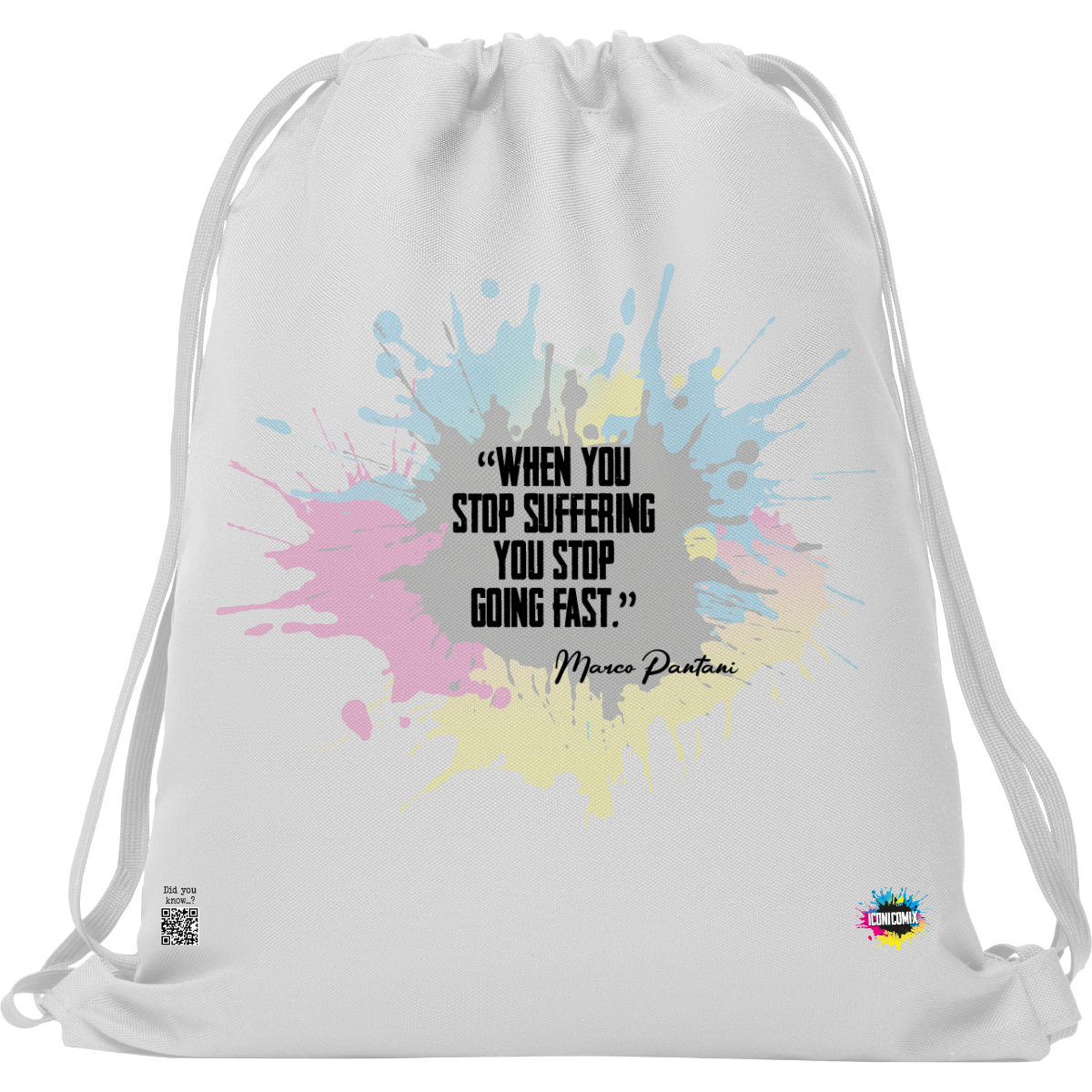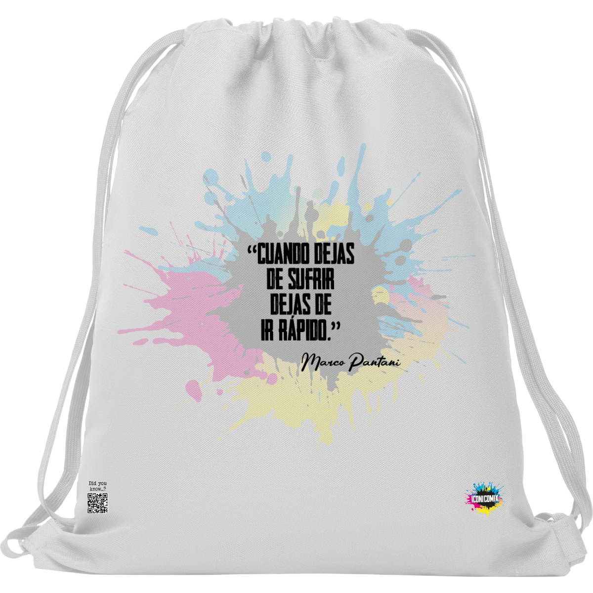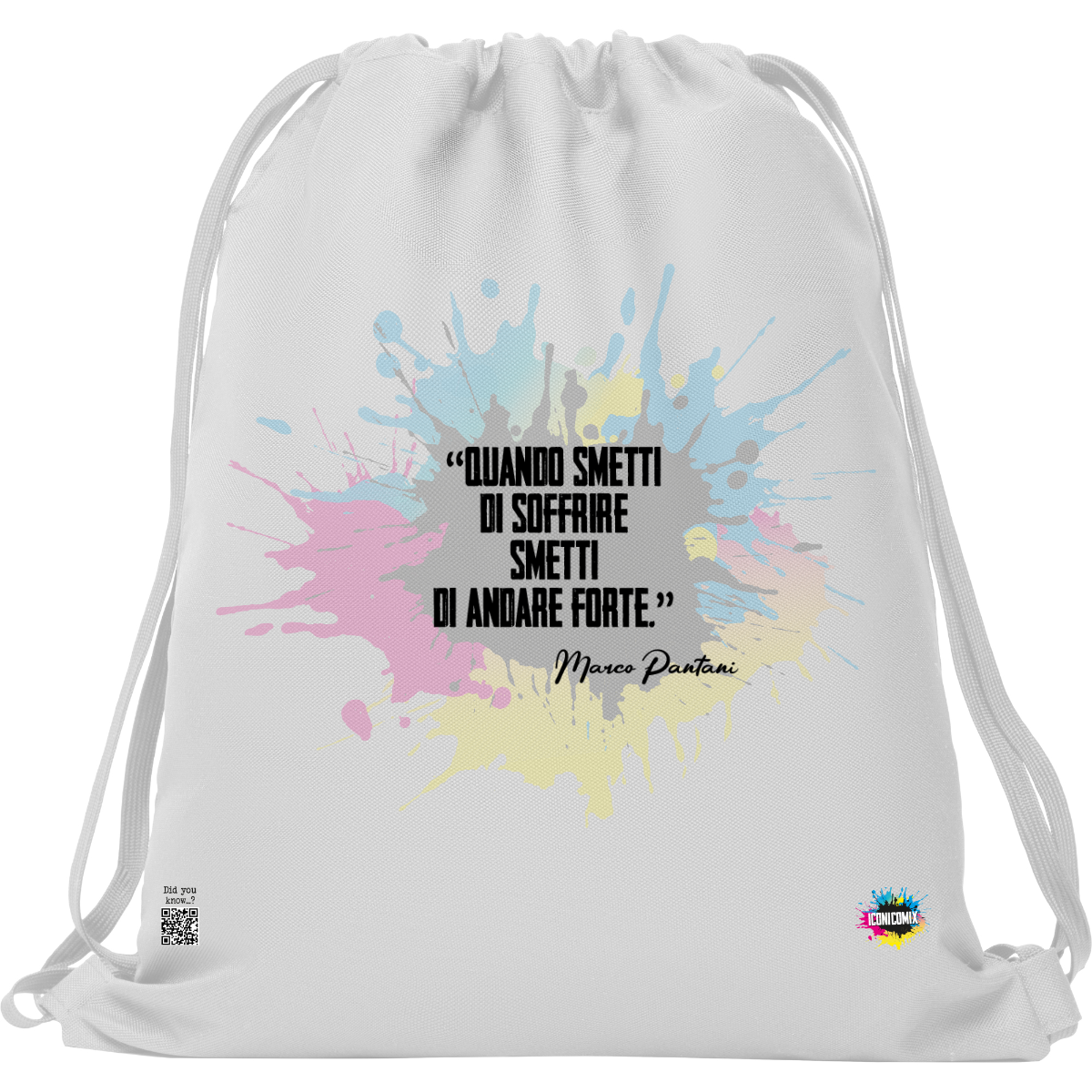 In ogni nostra grafica è presente anche un QR code che reindirizza al sito iconicomix.com, alla pagina ufficiale dell’icona che hai scelto. Una porta digitale che racconta la sua storia, le sue frasi e il suo mondo.