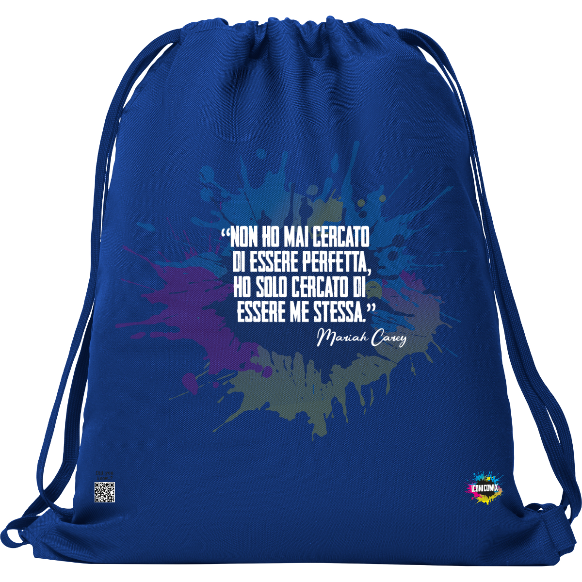In ogni nostra grafica è presente anche un QR code che reindirizza al sito iconicomix.com, alla pagina ufficiale dell’icona che hai scelto. Una porta digitale che racconta la sua storia, le sue frasi e il suo mondo.