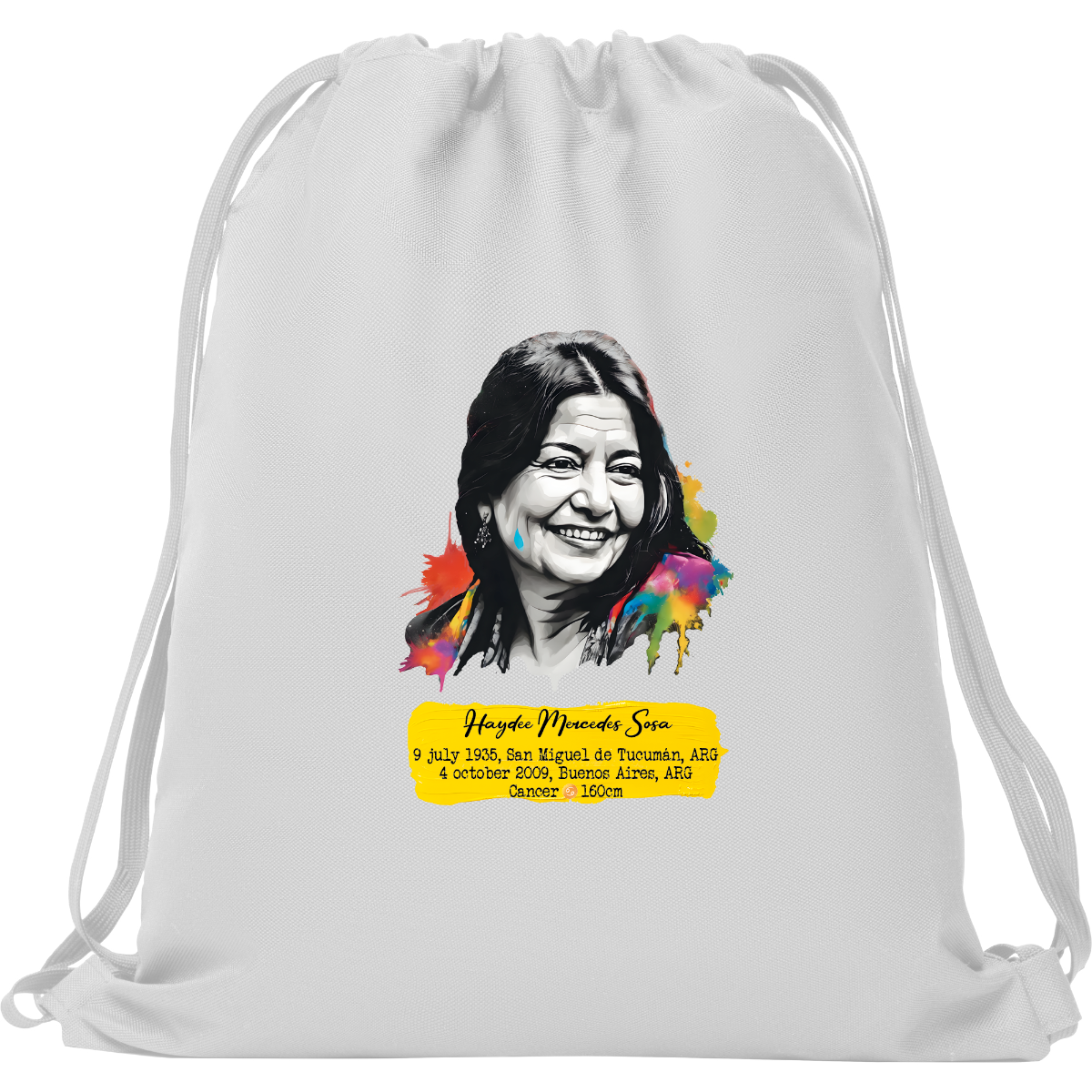 Multipurpose cotton backpack. Adjustable matching drawstrings on the back, 8 mm thick. 100% cotton, 140 g/m². Measures 37cm / 41cm