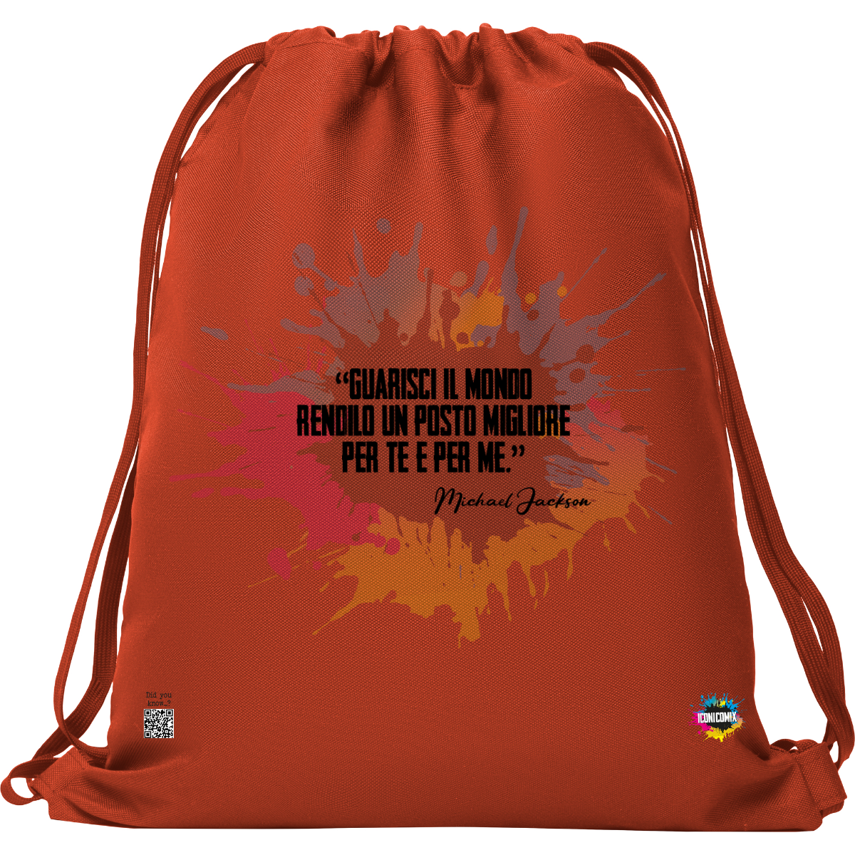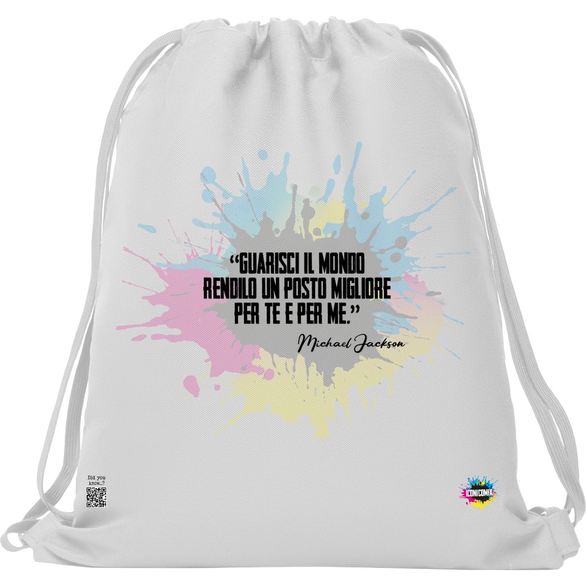 In ogni nostra grafica è presente anche un QR code che reindirizza al sito iconicomix.com, alla pagina ufficiale dell’icona che hai scelto. Una porta digitale che racconta la sua storia, le sue frasi e il suo mondo.