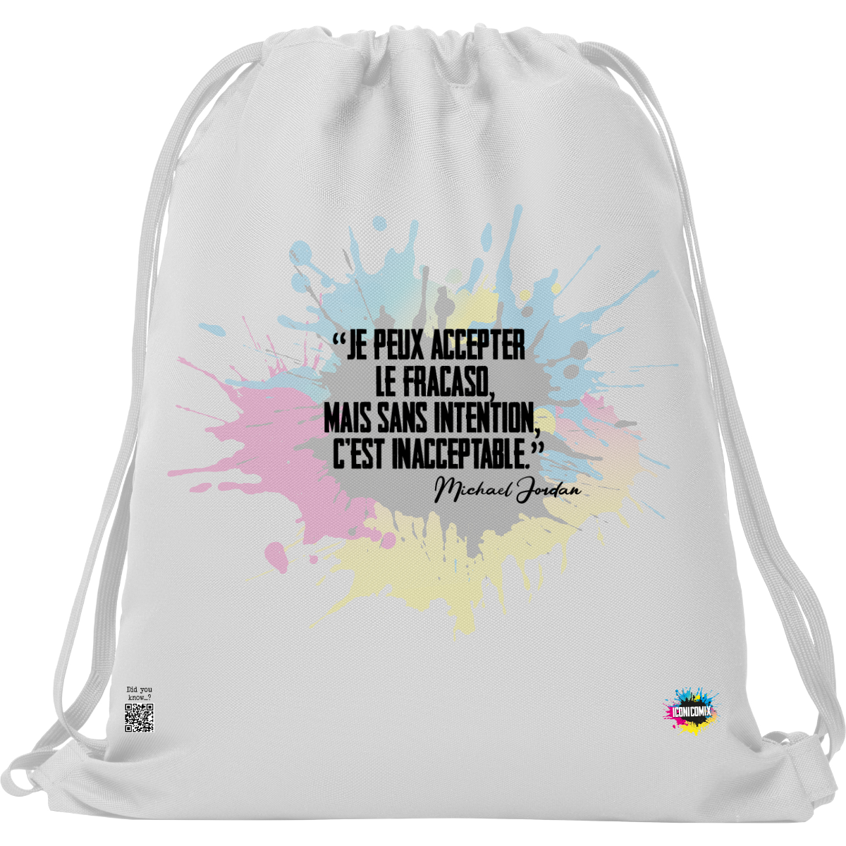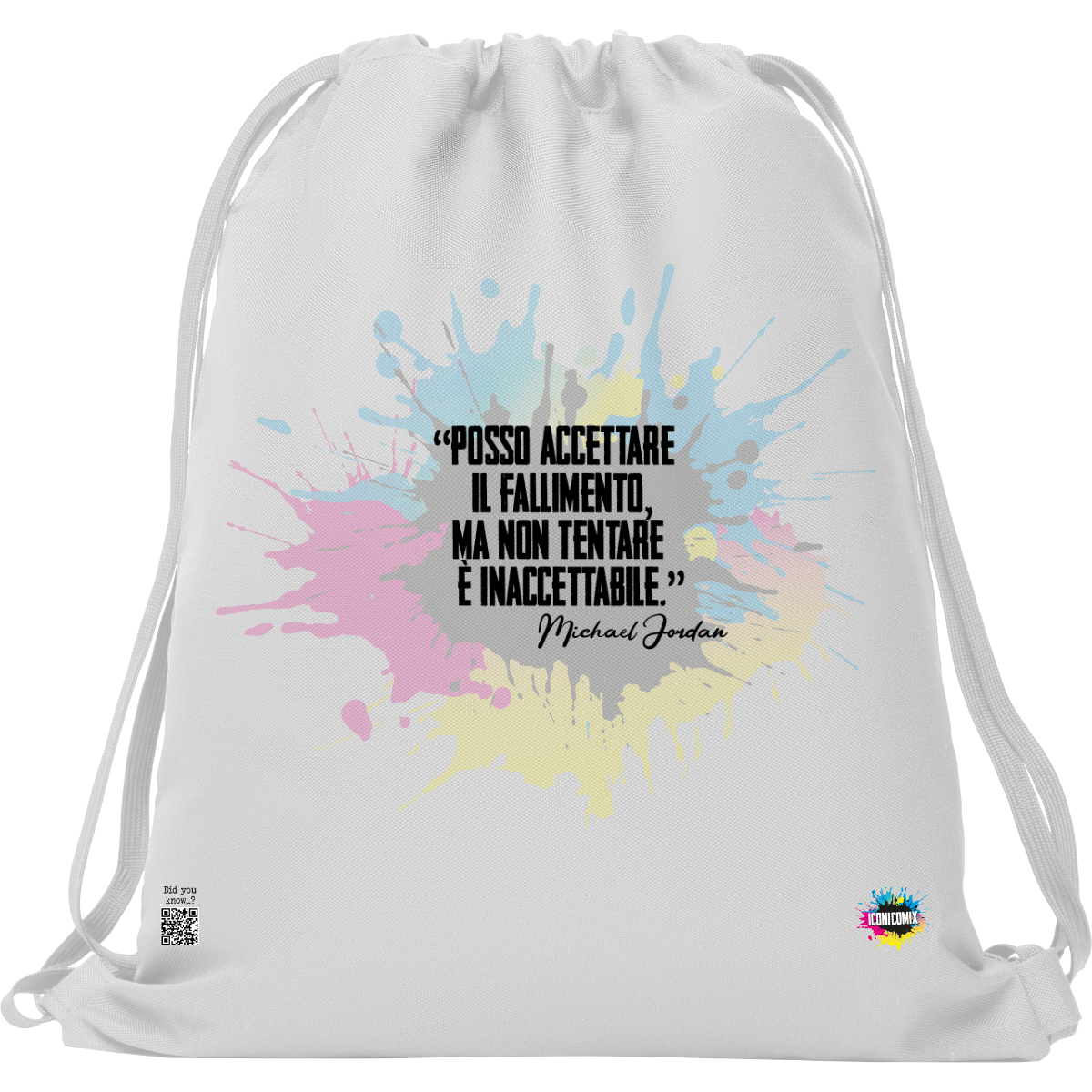 In ogni nostra grafica è presente anche un QR code che reindirizza al sito iconicomix.com, alla pagina ufficiale dell’icona che hai scelto. Una porta digitale che racconta la sua storia, le sue frasi e il suo mondo.