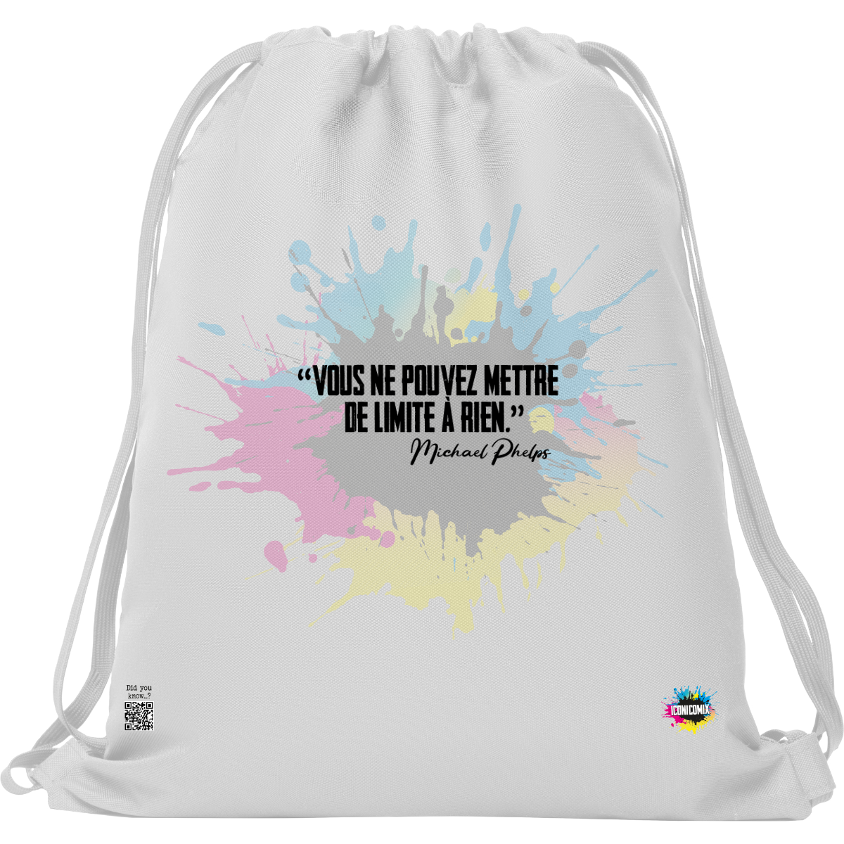 In ogni nostra grafica è presente anche un QR code che reindirizza al sito iconicomix.com, alla pagina ufficiale dell’icona che hai scelto. Una porta digitale che racconta la sua storia, le sue frasi e il suo mondo.