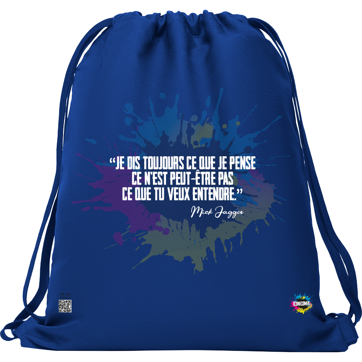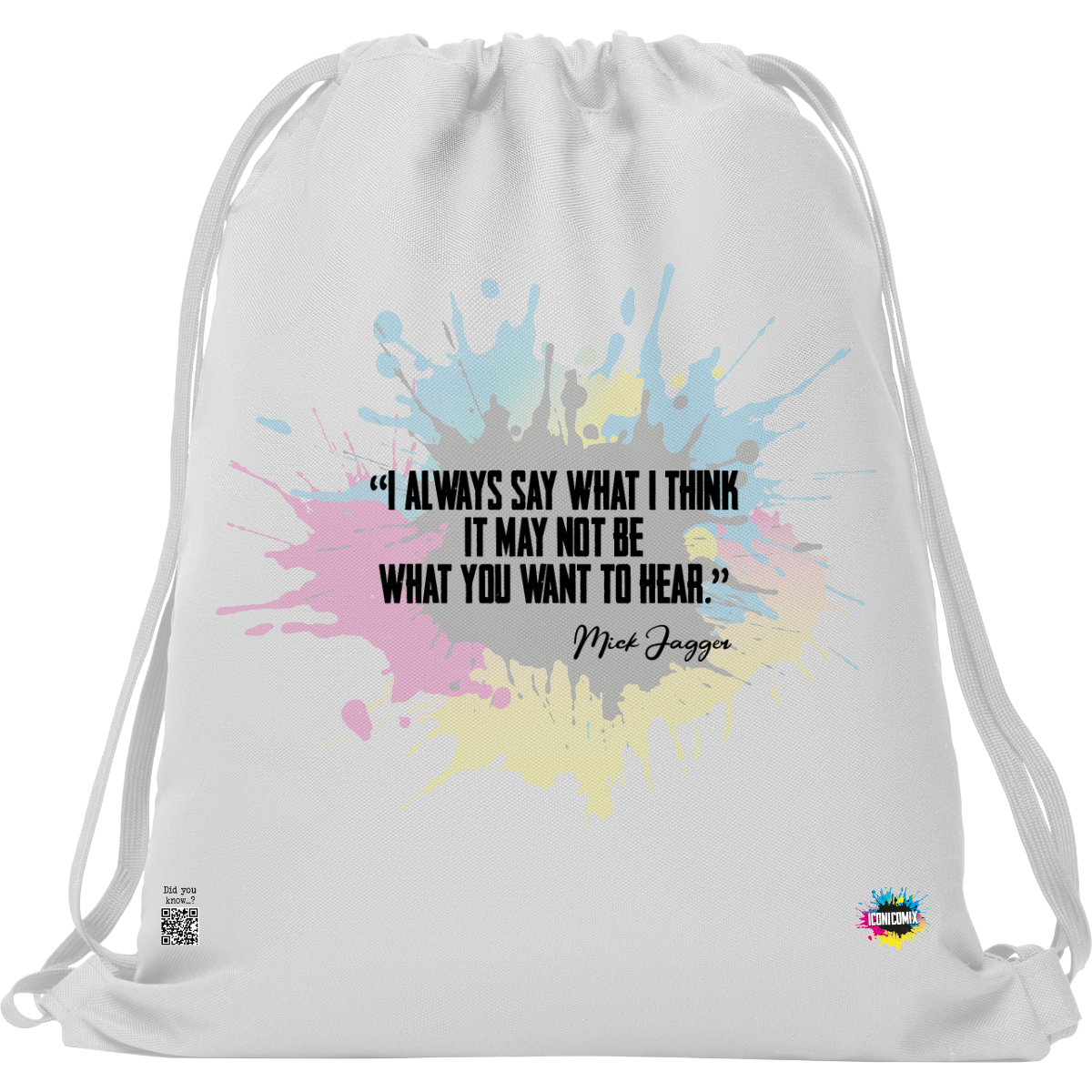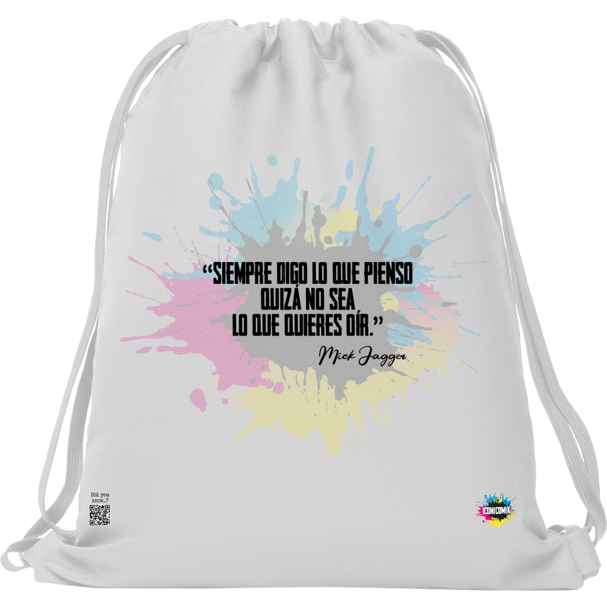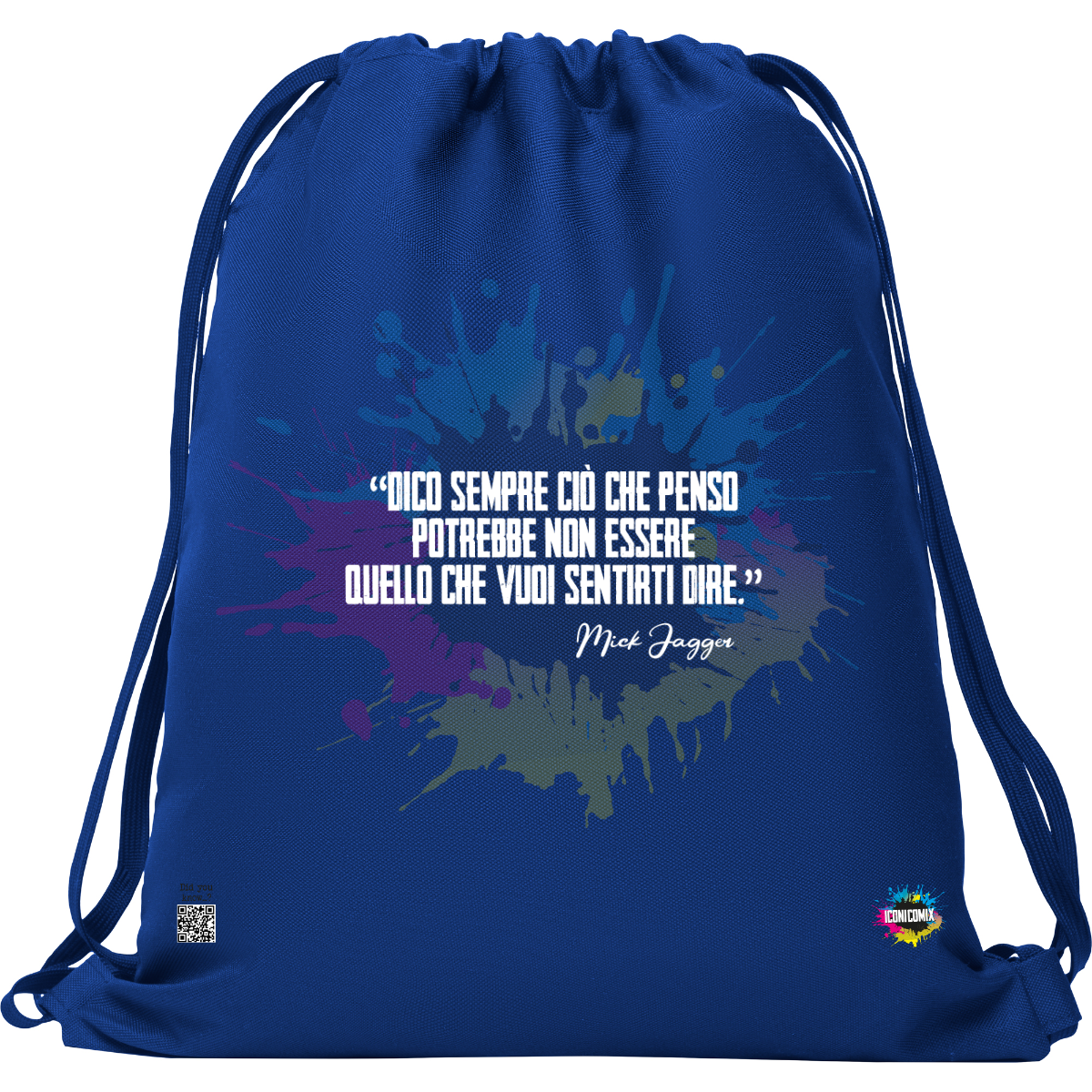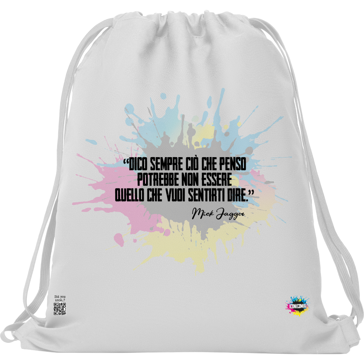 In ogni nostra grafica è presente anche un QR code che reindirizza al sito iconicomix.com, alla pagina ufficiale dell’icona che hai scelto. Una porta digitale che racconta la sua storia, le sue frasi e il suo mondo.