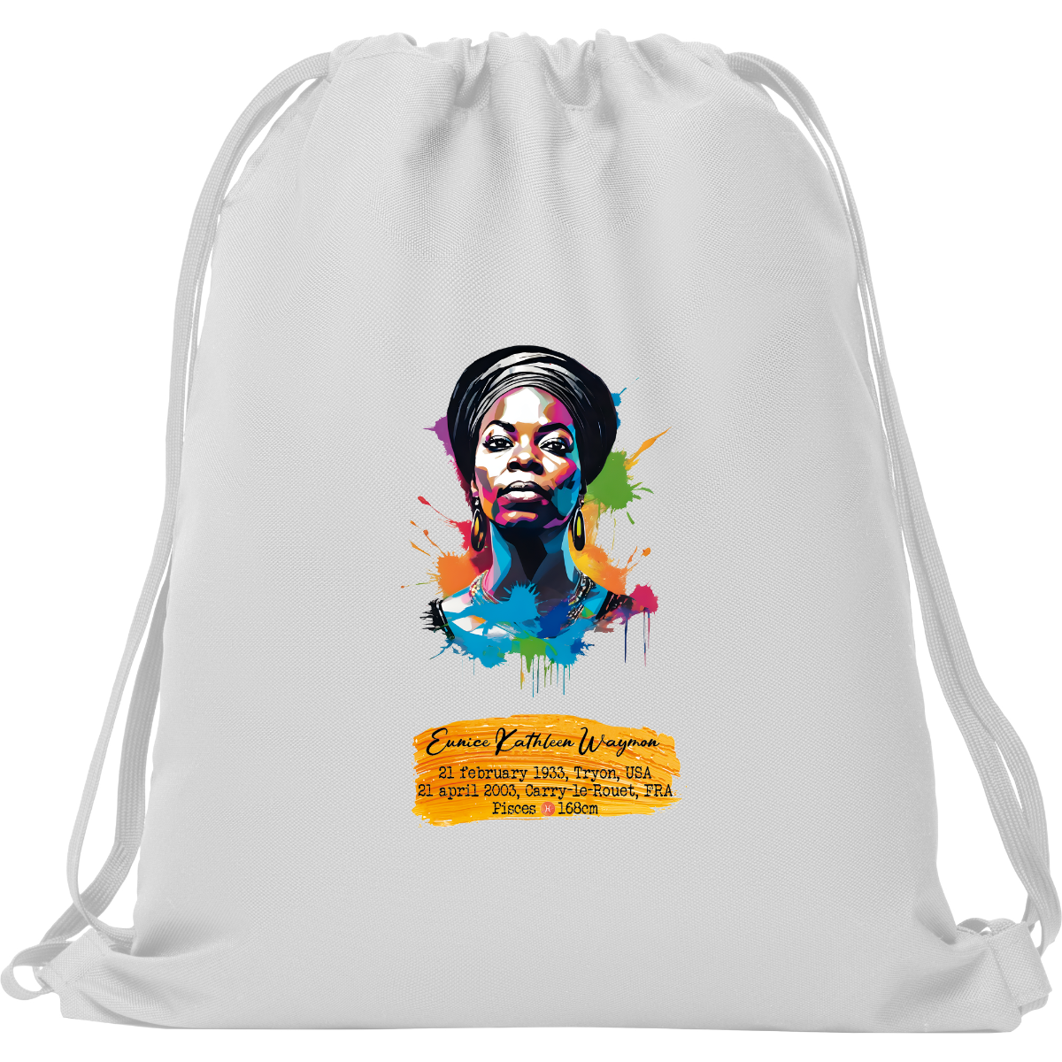 Borsa sportiva con coulisse dal design semplice. Cordini piatti abbinati. Tasca interna con cerniera. 100% poliestere 600D. 150 g/m².  Misure  35,5 X 42,5 cm