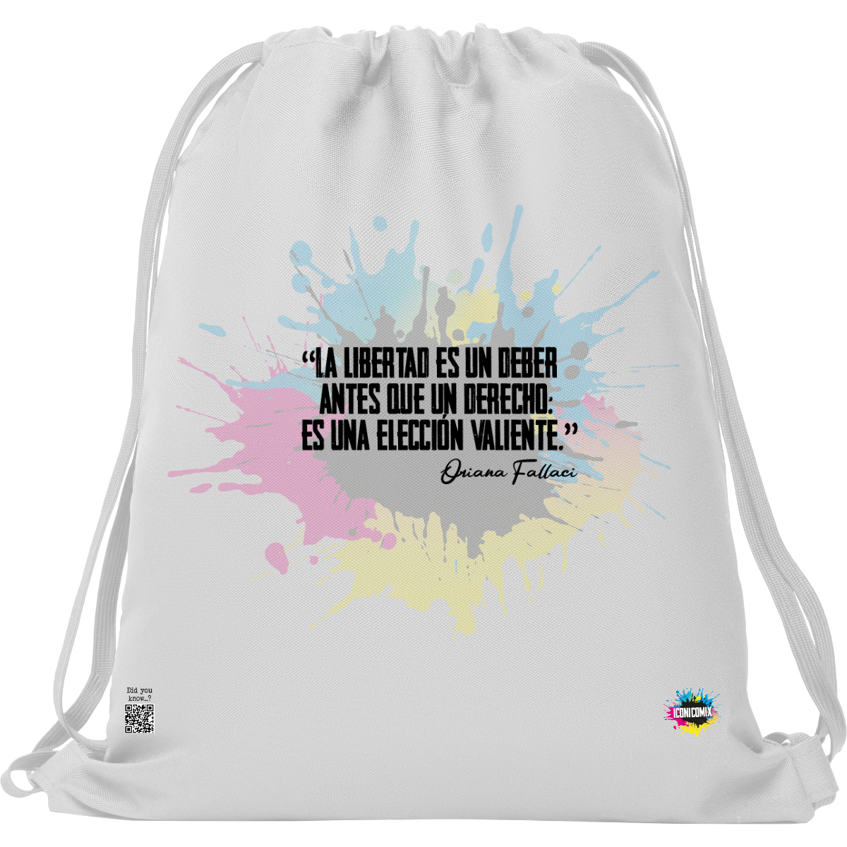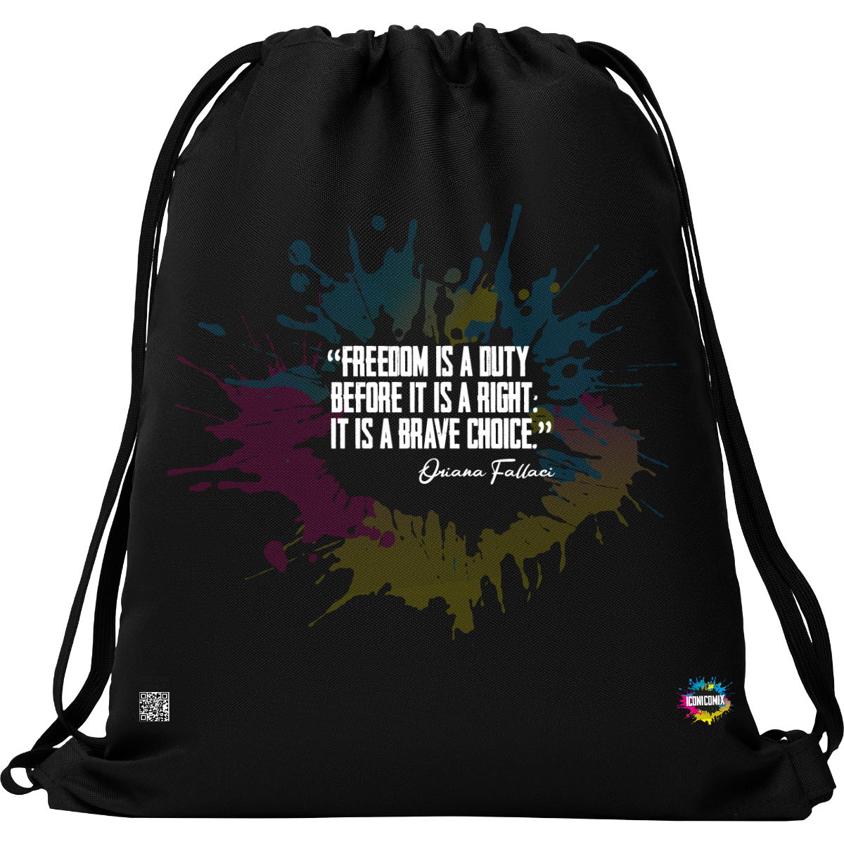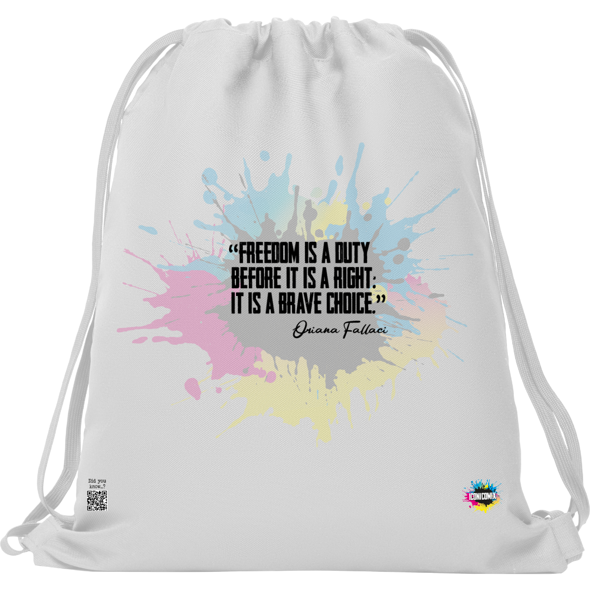 In ogni nostra grafica è presente anche un QR code che reindirizza al sito iconicomix.com, alla pagina ufficiale dell’icona che hai scelto. Una porta digitale che racconta la sua storia, le sue frasi e il suo mondo.