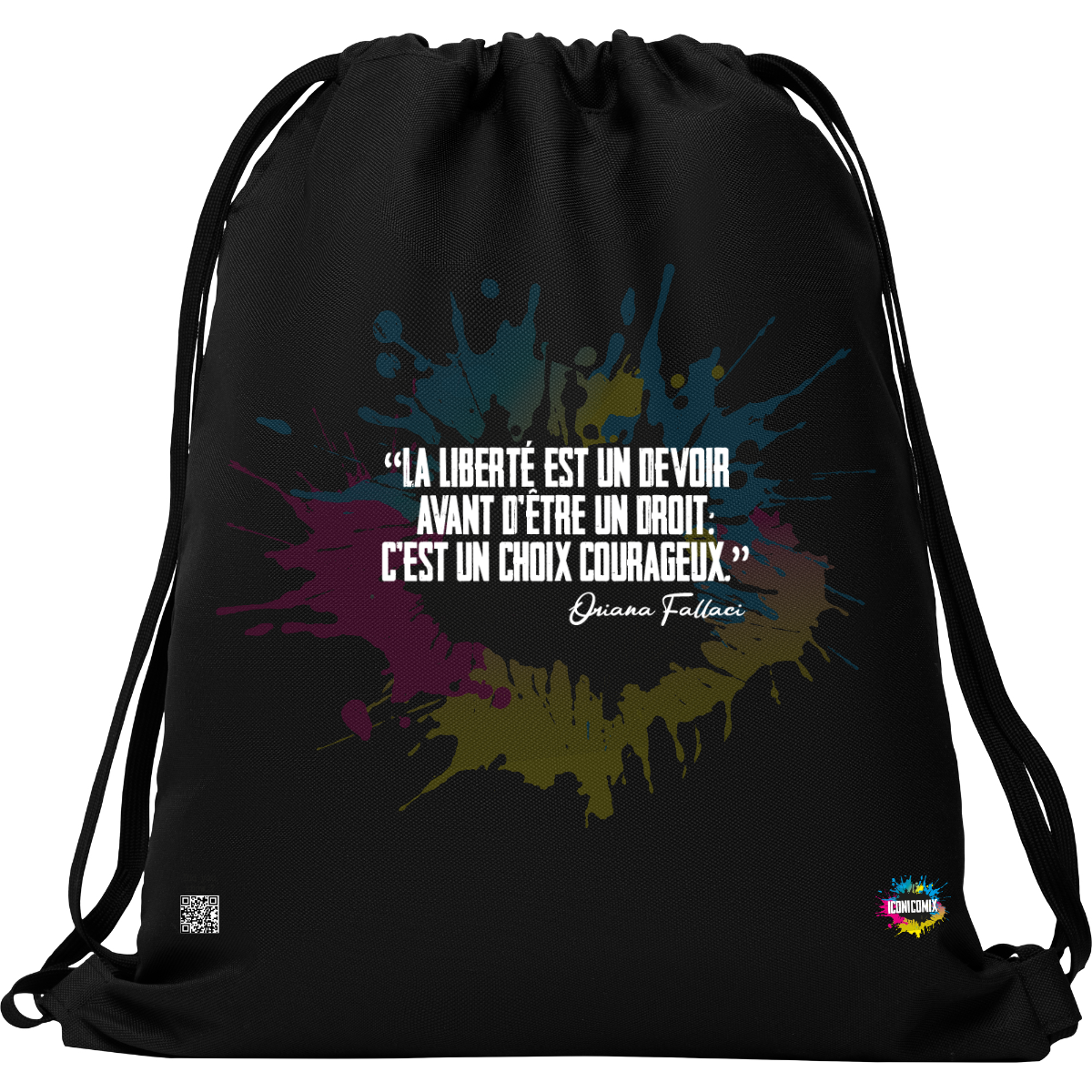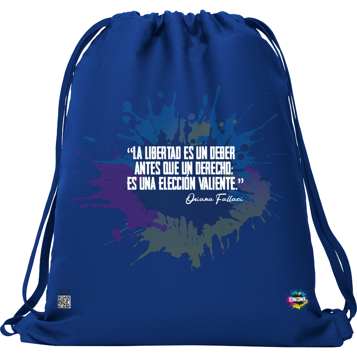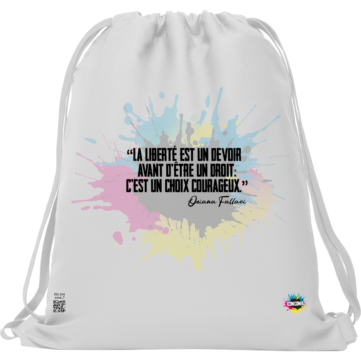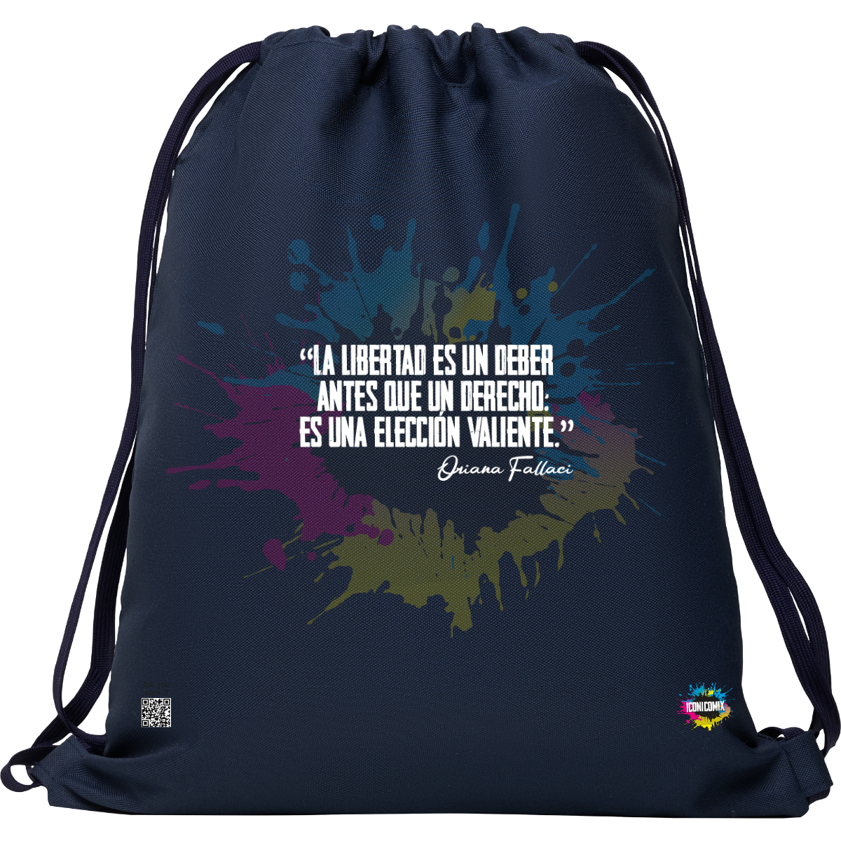 In ogni nostra grafica è presente anche un QR code che reindirizza al sito iconicomix.com, alla pagina ufficiale dell’icona che hai scelto. Una porta digitale che racconta la sua storia, le sue frasi e il suo mondo.