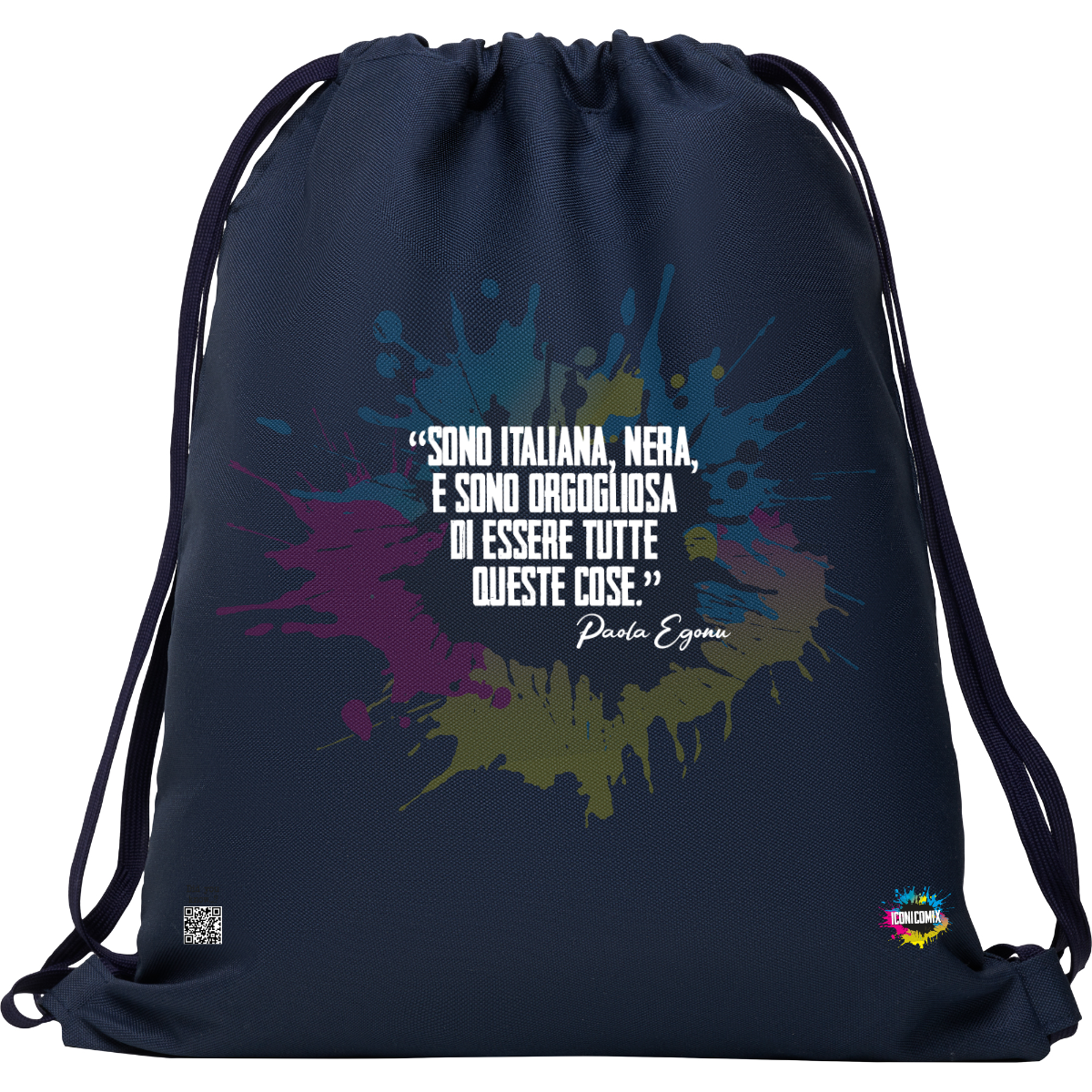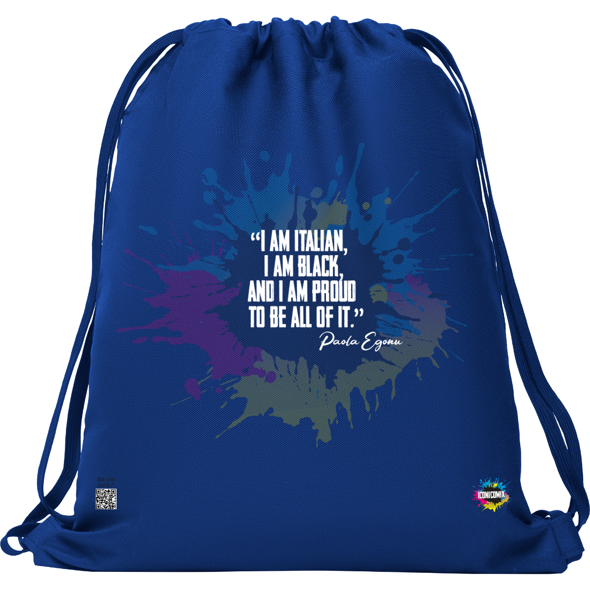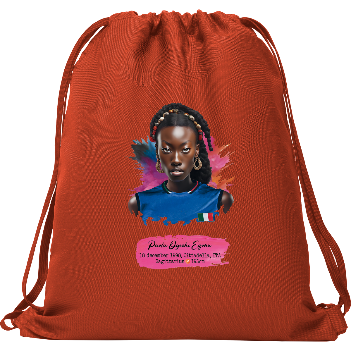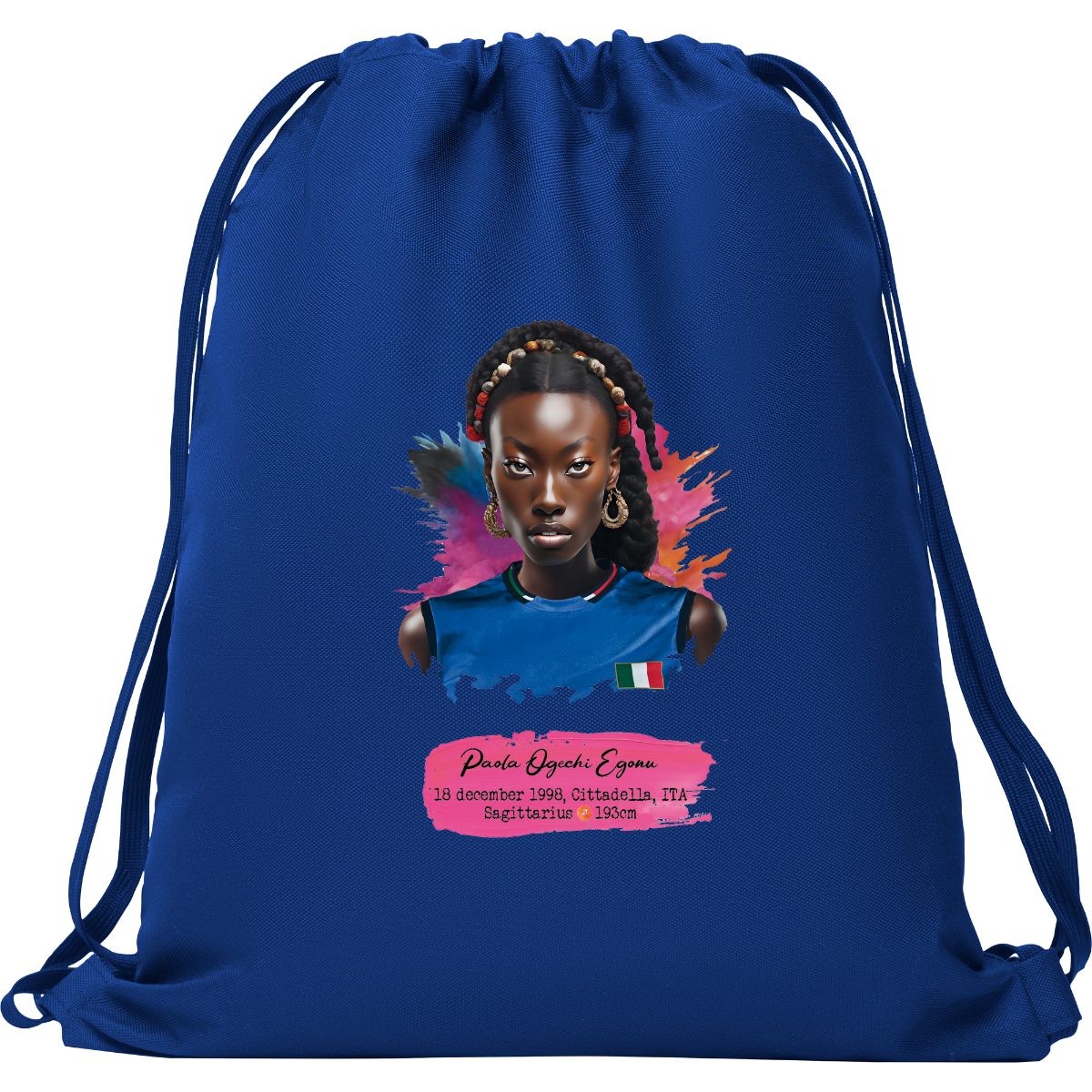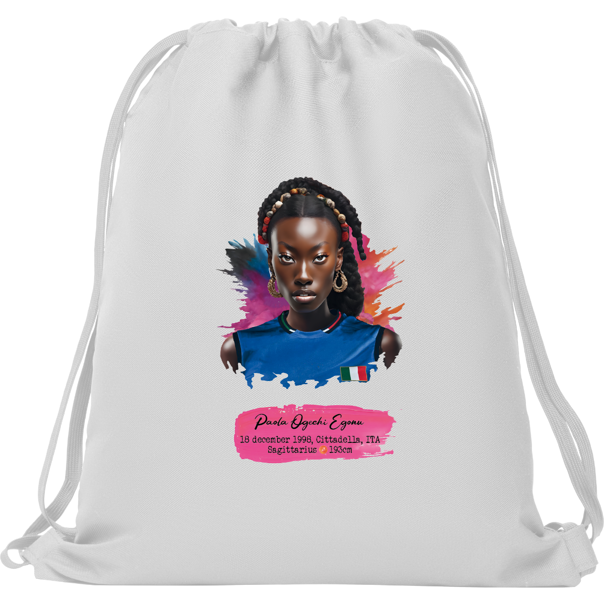 Multipurpose cotton backpack. Adjustable matching drawstrings on the back, 8 mm thick. 100% cotton, 140 g/m².  Measures 37cm / 41cm