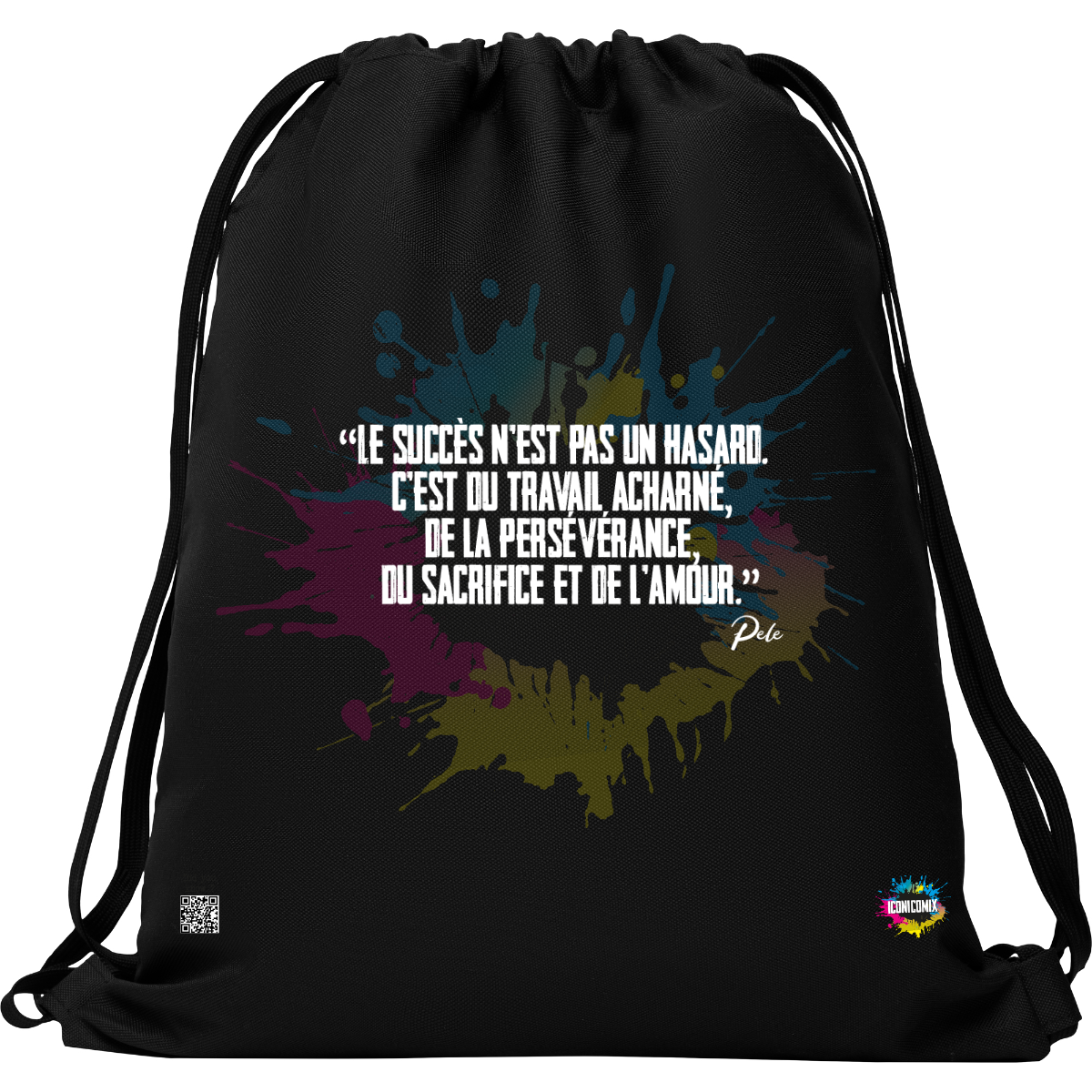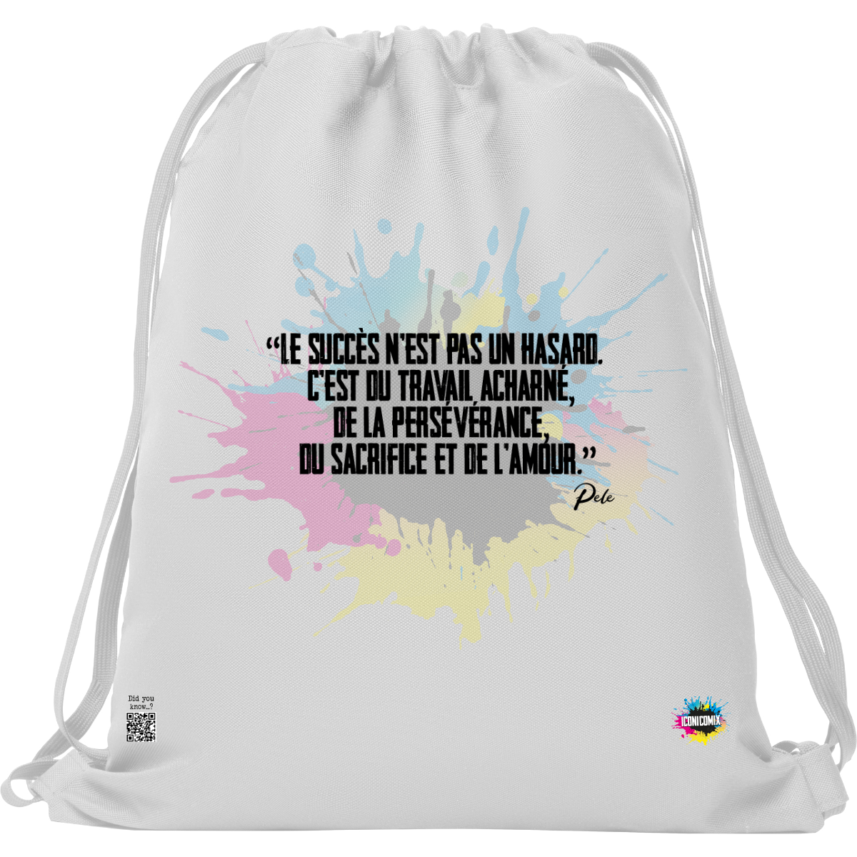 In ogni nostra grafica è presente anche un QR code che reindirizza al sito iconicomix.com, alla pagina ufficiale dell’icona che hai scelto. Una porta digitale che racconta la sua storia, le sue frasi e il suo mondo.