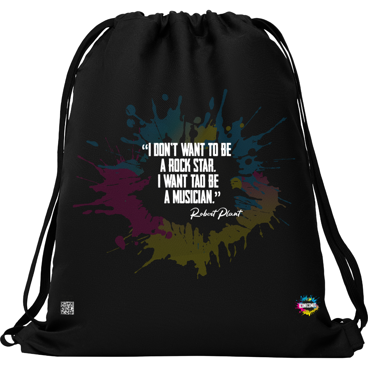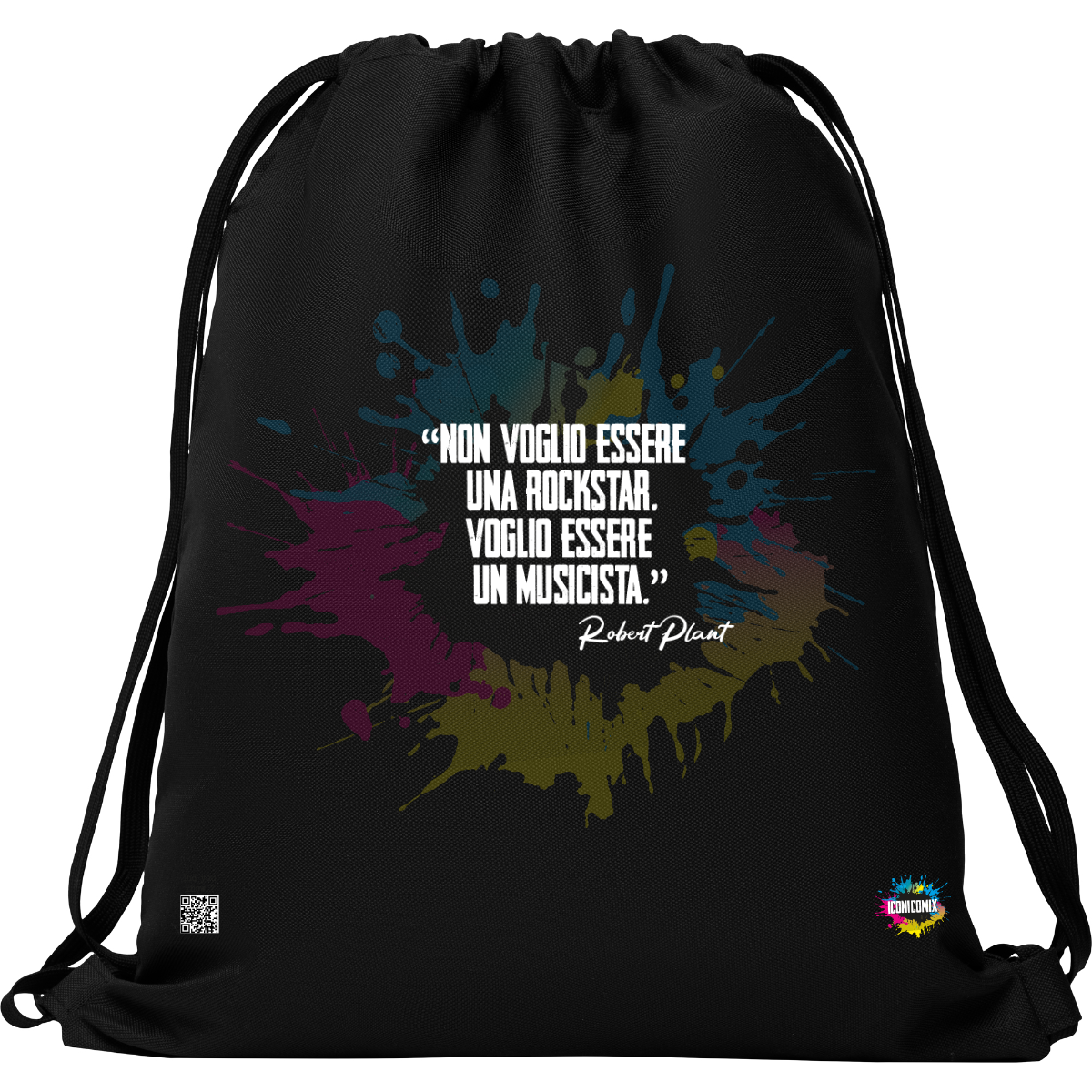 In ogni nostra grafica è presente anche un QR code che reindirizza al sito iconicomix.com, alla pagina ufficiale dell’icona che hai scelto. Una porta digitale che racconta la sua storia, le sue frasi e il suo mondo.