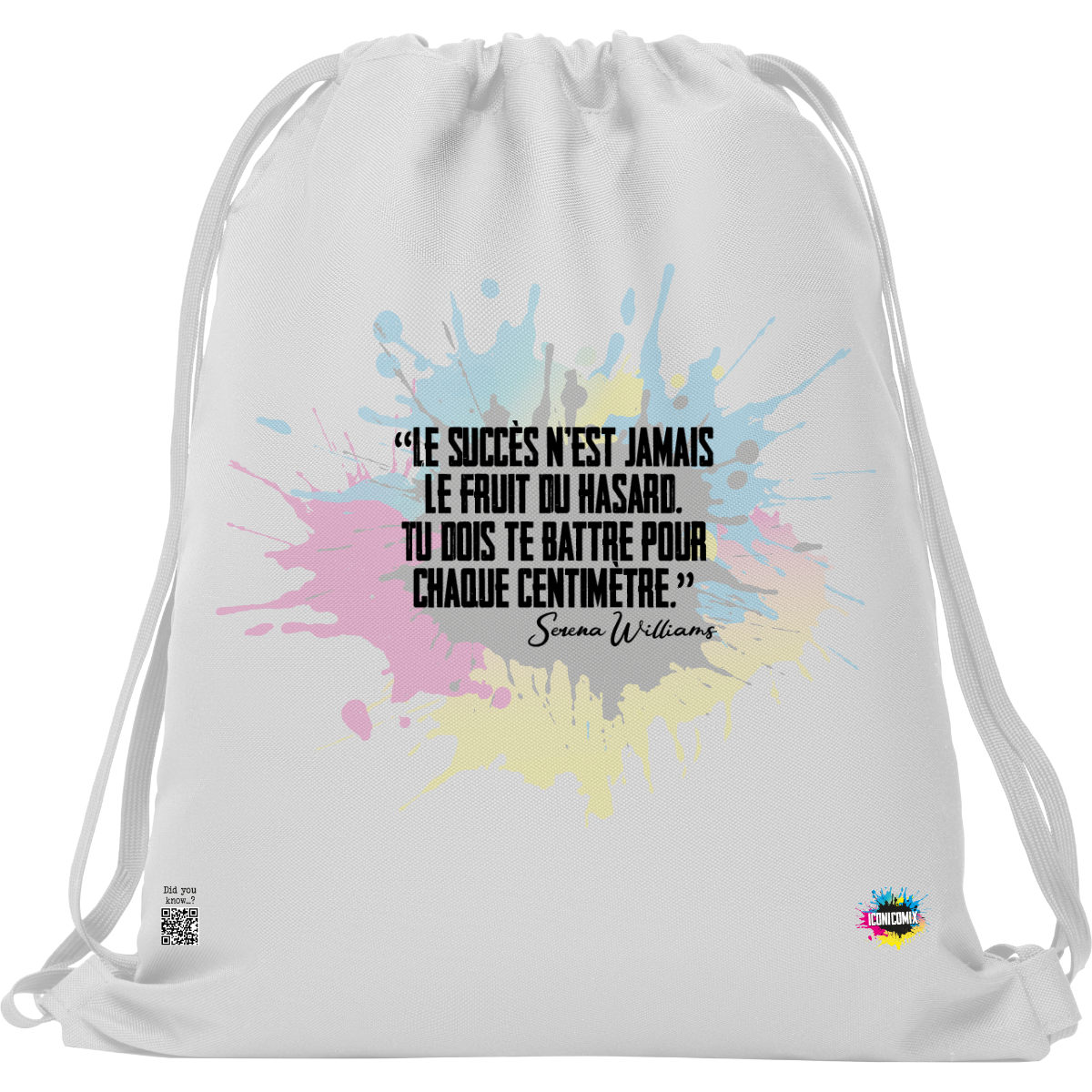 Borsa sportiva con coulisse dal design semplice. Cordini piatti abbinati. Tasca interna con cerniera. 100% poliestere 600D. 150 g/m².  Misure  35,5 X 42,5 cm