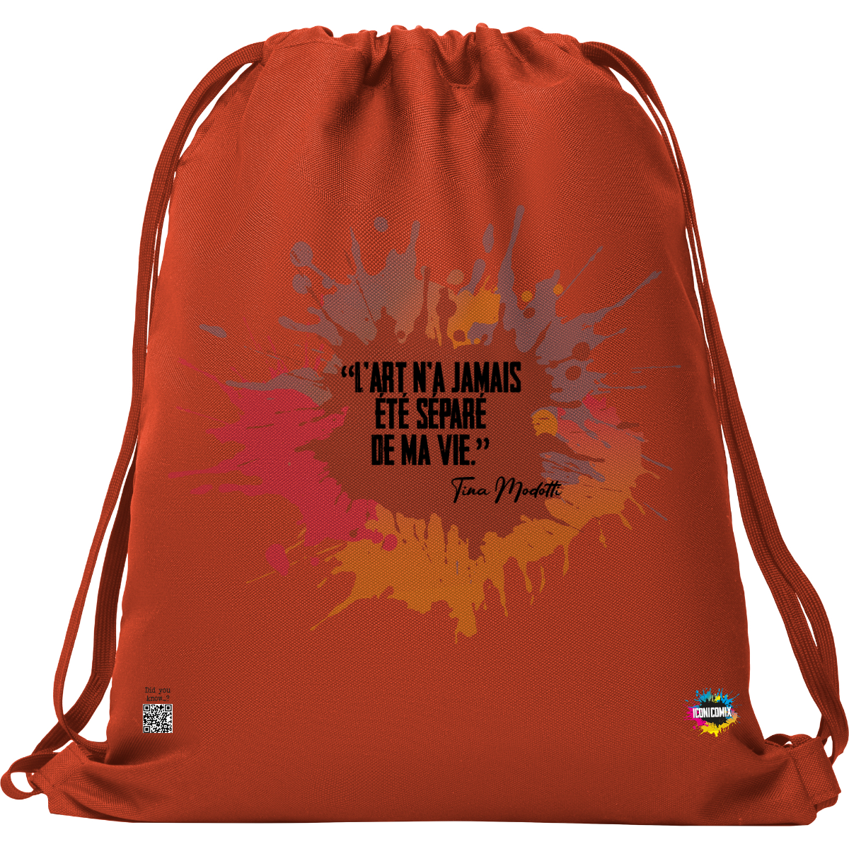 In ogni nostra grafica è presente anche un QR code che reindirizza al sito iconicomix.com, alla pagina ufficiale dell’icona che hai scelto. Una porta digitale che racconta la sua storia, le sue frasi e il suo mondo.